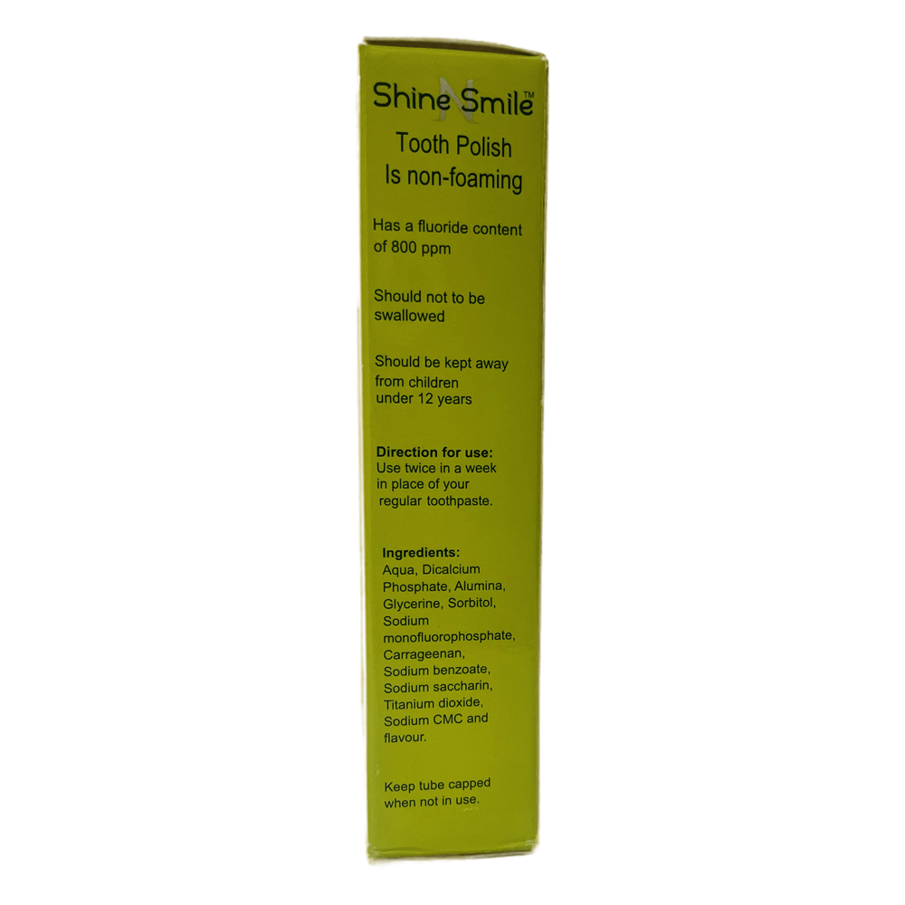• Dull, yellowish teeth are a source of constant embarrassment to a person. Shine-N-Smile offers a mild abrasive that polishes the teeth and renders them sparkling white.